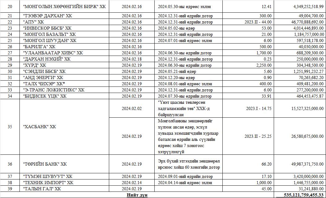 Санхүүгийн зохицуулах хорооноос (СЗХ) мэдээлснээр 39 хувьцаат компани нийт 535.1 тэрбум төгрөгийн ногдол ашиг тараах шийдвэрлэжээ. Энэ түүхэнд байгаагүй өндөр дүн юм.
